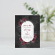Dunkle und launische Save the Date Karte mit Till Death Do Us Part Sprichwort, dunkle rote Rosen, Fledermäuse und Spinnennetze. Hat einen rauchigen schwarzen Aquarell-Hintergrund. Blakkletter Typografie trägt zum gotischen Gefühl der Ankündigung bei. Schauen Sie sich auch unsere Koordinierungsaufgaben an.