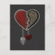 Gotische Illustration, die gotisches Schmuckherz in Rotem und in Schwarzem mit dem silbernen Schädel auf einem dunkelgrauen Hintergrund kennzeichnet.