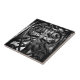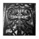 Ein altes schmiedeeisernes keltisches Kreuz von einer Tür auf einer Krypta in schwarz-weiß auf einer Kachel.