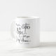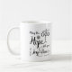Tasse mit einem trendigen Schriftzug-Vers aus den Römern 15:13, "Möge der Gott der Hoffnung euch mit aller Freude & Ruhe füllen" in zeitgenössischem Typografie-Stil. Designed in Erinnerung an Kim.