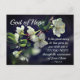 Die Osterpostkarte "Gott der Hoffnung" zeigt einen schönen Zweig weißer Kirschblüten auf schwarzem Hintergrund. Es zeigt Bibel Verse 1 Peter 1:3, "In seiner großen Barmherzigkeit hat er uns durch die Auferstehung Jesu Christi eine neue Geburt in eine LEBENDE HOFFNUNG gegeben."_
