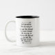 Serenity Gebetskaffee Tasse mit schwarz-weißem Pfeil Kalligraphie-Design.