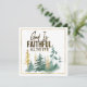 Eine inspirierende Zitat-Flachquadrat-Grußkarte zeigt ein einfaches naturfarbenes Design inklusive eines Waldes von grünen und goldenen Kiefern. Es enthält ein ermutigendes Christliches Zitat: "Gott ist treu die ganze Zeit."