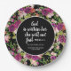Rosa und lila Aquarellblume auf schwarzen Christlich Bibel Vers Abitur Party Teller personalisiert mit Ihrem Namen, Schulname (High School oder Uni) und Abschluss Jahr. Im Text steht: "Gott ist in ihr, sie wird nicht versagt. Punkt 46:5"