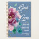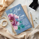 Personalisierter Christlicher Planer mit Bibelverse. Designed with verse "God is Liebe" aus 1 John Set vor einem tiefblauen Hintergrund mit eleganter zarter rosa Aquarellfarbe Blume.