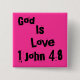 Rosa quadratischer Knopf mit Gott ist Liebebuchstaben.