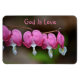 Dieser Magnet zeichnet sich durch rosafarbene Herzblüten und die beruhigende Botschaft aus, dass Gott die Liebe ist.