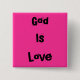 Rosa quadratischer Knopf mit Gott ist Liebebuchstaben.