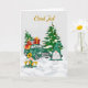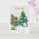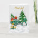 Schwedische Nomen Spaß Gott Jul oder Frohe Weihnachtskarte. Herr & Frau Gnome gekleidet in Grün mit einem grünen LKW mit einem Weihnachtsbaum. Notecard-Typ für Ihre eigene schriftliche Nachricht