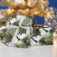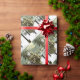 Retro Ende des 19. Jahrhunderts St. Nikolaus mit einem Urlaubshaus und eine große Tüte Geschenk über eine Brücke. Das von Kopf bis Fuß in Waldfarben bedruckte Kunstwerk wurde bearbeitet, um die Farben aufzuhellen.