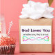 Gott Liebe dir, ob du es magst oder nicht. Dies ist ein großartiges Christliches Sprichwort, das die Wahrheit hält. Ein buntes Herz geformt Rahmen unter den Wörtern. Image-Eigenschaft von Diligent Heart.