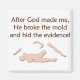 Nachdem Gott mich gemacht hatte, brach er die Form und versteckte die Beweise. Funny Spaß Design mit gebrochenem menschlichem Mannequin-Bild, erstellt von Briana Blair.