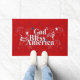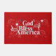 Gott segne Amerika schmückt diese patriotische Türmatte mit weißen Sternen auf einem hellen roten Hintergrund.