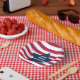 Paper Bowl Set gedruckt mit "God Bless America Red White and Blue" Schrift und Streifen Kunstwerk Design von TheFabricSeal auf Zazzle.com #ZazzleMade TheFabricSeal ©️ Original. Rot-weiße Streifen aus horizontalem Button mit einem großen blauen Stern und einem weißen Buchstaben innen. Ideal zum Mischen und Zusammenfügen der amerikanischen Nationalflagge, des Nationalstolzes und des 4. US Flagge. Im Juli feiern wir die Geburt unseres schönen Landes mit thematischen Designs und Produkten zusammen. Ideal für lässige Spaß Mode, Innendekoration, Feiern, Unterhaltung, Sport, Ferien und vieles mehr. Jedes Set mit acht Tellern ist auf haltbarem Papier gedruckt. Diese Teller eignen sich hervorragend für Kuchen, Häppchen oder Salate. Bestellen Sie diese mit unseren Papierservietten und Tellern für ein komplettes Set Party Geschirr, das Ihre Gäste Liebe!