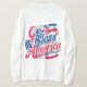 Das Design des T - Shirt "Gott segne Amerika" zeigt die Phrase in einem auffallenden, Vintagen Schriftart mit einem subtil bedrückten Finish. Der Text ist mit dekorativen Elementen wie US Flagge verziert und enthält oft eine kleine amerikanische Flagge oder Adlermotiv, alles Set vor einem Hintergrund, der ein Gefühl patriotischen Stolzes und zeitlosen Respekt hervorruft.
