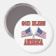 Magnet mit Gott segne Amerika und zwei amerikanische Flaggen überkreuzt. Ein perfektes Geschenk für patriotische amerikanische Bürger, die stolz auf ihr Land sind, um an allem festzuhalten, an dem ein Magnet sich halten wird.