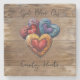 Dieser wunderschöne Untersetzer aus Stein hat ein volles Herz an bunten, kleinen Garnherzen, umgeben von einer reichen rustikalen Holzkuppel. Eine lustige Ergänzung zu Ihrem Familienzimmer, Wohnzimmer, Veranda, Terrasse, Küche, etc...