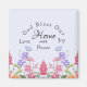 Schönes Christliches Zitat, das "Gott segne unsere Zuhause mit Liebe Frieden und Freude" mit blumigen Wildblumen und Schmetterlingen verbindet. Toll wie ein ermutigendes Zitat in der Küche oder in anderen Räumen.