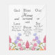 Schönes Christliches Zitat, das "Gott segne unsere Zuhause mit Liebe, Frieden und Freude" mit blumigen Wildblumen und Schmetterlingen verbindet. Ein herzliches Geschenk oder Dekor für jeden Zuhause-Besitzer.