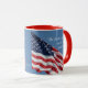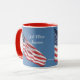 Rote, weiße und blaue Tasse mit amerikanischen Flaggen. Seiten ein lässt "Gott Amerika segnen" und andere Seite hat "das Land vom freien und das Zuhause vom tapferen." Zeigen Sie Ihren Patriotismus mit dieser amerikanische Flaggen-Tasse! Erhalten Sie ein zusammenpassendes Set für jeder im Zuhause oder im Büro. Trinken Sie Ihren Tee, oder Kaffee von diesem bunten Gott segnen Amerika-Tasse.