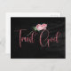 Vertraue Gott Christliche Postkarten Rose Gold Imitate Glitzer Typografie Kalligraphie lautet: "Vertraue Gott" mit langen stemmed rosa Rose. Christliche Zitate Shop VIkkelynn Designs & Co.