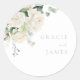 Divine White Roses & Sage Wedding Classic Round Sticker Siehe Matching Collection in Nest und Nest Store