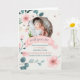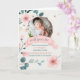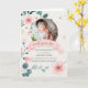 Liebliche Pfirsichblüten und Eukalyptuszweige tanzen auf dieser Girls-Fotokarte, um Freunde zu bitten, die Godeltern Ihrer neuen Tochter zu sein.