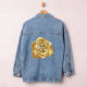 Een gouden roos op de achterkant van een denim jacket. Met daarin het logo van het Vishnuh-Genootschap