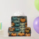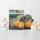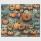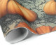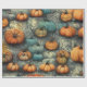 Dieses Design besticht durch eine fesselnde Mischung aus Kürbissen in warmen, orangen und coolen aquamarinen Farbtönen, Set vor einem knackigen, mondbeleuchteten Hintergrund. Die Kürbisse sind in einem Schichtenmuster angeordnet, verwoben mit dunklen, verdrehten Weinreben, die ein Gefühl von Tiefe und Textur schaffen. Einige Kürbisse werden in Jack-o'-Laternen mit glänzenden, schelenden Grinen eingemeißelt, während andere ungeschnitzt bleiben und der Komposition Kontrast und Vielfalt verleihen. Die abgedämpften Hintergrundfarben verstärken die kräftigen Kürbisfarben und verleihen dem Gesamtbild ein etwas unheimliches, aber auch skurriles Ambiente. Dieses Muster würde ein optisch auffallendes Papier oder Gewebepapier herstellen, perfekt für Halloween- oder Herbstgeschenke, um festlichen Spaß mit einer Touch Geheimnis zu verbinden.