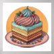 Dieser köstliche Plakatdruck zeigt einen Gourmetkuchen mit farbenfrohen Zuckergüssen und Decks, Set vor einem warmen Hintergrund. Die detaillierte und lebendige Illustration macht sie zu einer perfekten Ergänzung für jede Küche oder jeden Essbereich. Designdatei zum sofortigen Download verfügbar.