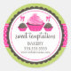 © 2012 Sozialite Designs. Unsere eleganten Kuchen und Kuchen Popps Bäckerei Aufkleber hat eine Gourmet-Kuchen und Kuchen Popps Design in einem Spitzen / Jakobszirkel. Das Design hat auch ein lebendiges fuchsienrosa Band mit Polka-Punkten. Ein wunderschönes Design, das als Siegel auf Bäckereikisten verwendet werden kann.