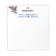 Ein lustiges Notizblock der Regierung. Hochauflösende Grafik des Glatzenadlers mit amerikanischem Überlagerungsrahmen. Text sagt: "Erstmalige Qualität, zweites Mal."