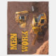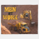 Diese coole Fleecedecke kennzeichnet ein atemberaubendes Foto eines gelben Baggertraktors und des Kippers auf einer Baustelle mit dem kundengerechten Text, "Männer bei der Arbeit."