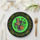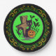 Grabstein der gelben grünen Katze Halloween Pappteller