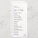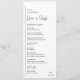 Modernes Hochzeitsprogramm mit einem einfachen und minimalen geometrischen Design mit einer vertikalen Linie entlang der links Seite mit Ihren Details in links Ausrichtung. Ihre Namen sind in einer Handschrift für eine elegante Touch. In der rechten unteren Ecke befindet sich das erste Monogramm über eine kleine horizontale Linie. Die Farbpalette kann im Entwurfsbearbeitungsprogramm geändert werden.