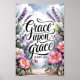 Aquarellfarbene Blume in Lavendel- und Rosatönen, mit den Worten "Grace Upon Grace" in fließender, eleganter kalligraphischer Typografie.