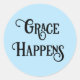Grace Happens, optimistischer Typ, hellblauer Hint Runder Aufkleber