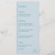 Grace Mute Blue Moderne Hochzeit Menükarte