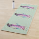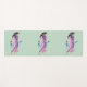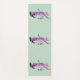 Diese Yoga-Matte ist grün mit drei anmutigen alten ägyptischen Frauen mit schwarzem Haar und Goldschmuck, die ein lila Kleid mit einem schierblauen Schal tragen.