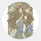 Eine exquisite Jugendstil-Illustration, die eine anmutige weibliche Figur mit ruhigem Ausdruck und fließendem Haar zeigt, die mit stilisierten floralen und botanischen Elementen kombiniert wird. Die Bio, sanften Linien und die harmonische, gedämpfte Farbpalette des Designs erinnern an die zauberhafte Schönheit und die natürliche Eleganz der Epoche.