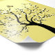 A graceful tree with dark, elegant branches sways against a yellow backdrop. Delicate blooms adorn its limbs, while soft yellow butterflies flutter around, adding a serene touch of movement and lightness to the composition.