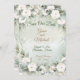 Ankündigen Sie Ihren besonderen Tag mit unserer schönen Grünen Hochzeit Speichern Sie die Date-Karte. Dieses exquisite Design vereint weiße Rosensträucher mit frischer Eukalyptusgrüne und schafft so eine bezaubernde Vorschau auf Ihre anstehende Feier. Die anmutigen weißen Rosen und Eukalyptuszweige in Aquarellfarbe umrahmen die zentrale Inschrift sanft mit Ihrem Namen und ergänzen perfekt den boho Stil Ihres Hochzeitstils. Diese Save the Date elegante Karte eignet sich ideal für Bräute und verleiht Ihrem Hochzeitsdekor eine elegante, grüne, weiße und goldene Note. Personalisieren Sie dieses charmante Design, um es einzigartig zu machen und lassen, dass Ihre Gäste Ihren unvergesslichen Tag erwarten. Mit seinem fesselnden Blumenwerk und seinem eleganten Stil ist unsere grüne Hochzeit Save the Date Karte der perfekte Weg, um den Ton für Ihren besondere Anlass Set.