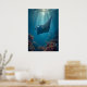Ein atemberaubendes Beispiel für einen Mantarochen, der durch kristallklares Wasser gleitet und von Sonnenbänken über ein lebendiges Korallenriff erhellt wird. Ideal für Ozeanliebhaber, marinen Dekor und Kunstsammlungen unter Wasser.