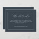 This elegant wedding enclosure card features a sophisticated and minimalist design, perfect for conveying essential details with grace. The dark background is complemented by refined white typography that exudes an air of timeless elegance. The flowing script at the top adds a touch of romance and personal flair, while the clean lines and simple layout ensure clarity and ease of reading. Ideal for couples aiming to maintain a classic yet modern aesthetic, this card seamlessly integrates into your special day's decor, providing guests with important information in style.