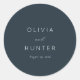 This elegant design features a minimalist and sophisticated style, perfect for wedding stickers. The clean typography is simple yet refined, set against a deep navy background that exudes timeless charm. Ideal for capturing the essence of your special day, this design conveys a sense of understated elegance and romance. Its versatile aesthetic makes it suitable for various wedding stationery needs, allowing you to add a touch of class to your invitations or favors.