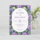 This elegant wedding invitation features a lush floral design with vibrant purple and green hydrangeas, creating a sophisticated and romantic atmosphere. The oval layout is framed by the blooming flowers, adding a touch of natural beauty to the overall aesthetic. The typography is classic and refined, complementing the botanical theme perfectly. Ideal for couples seeking an inviting and timeless look for their special day, this design captures the essence of celebration and love. Customize it effortlessly to reflect your unique occasion.