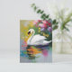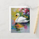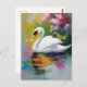 Graceful Swan Amidst Lebendige Blüten Postkarte