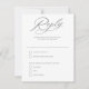 Diese wunderschöne Antwortkarte verfügt über ein anmutiges Kalligraphieskript, einen klassischen weißen Hintergrund und eine elegante Typografie. Dieses elegante Design ist eine fabelhafte Wahl für viele Arten von Veranstaltungen, von klassisch bis boho. Diese rsvp-Karte koordiniert mit unseren Graceful Script Hochzeitseinladungen.