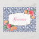 Dunkelblaue und weiße Fliesen, handbemalte Aquarellfrüchte, lebhafte rosa Blumen und glänzende grüne Blätter. Dieses Design passt zu meinem Brautparty / Baby Shower Schreibwaren in der gleichen Reihe (Sammlung).