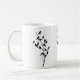 Diese hübsche Schwarzweiss-Tasse kennzeichnet die Silhouetten der grackles, die auf einer Baumniederlassung gehockt werden.